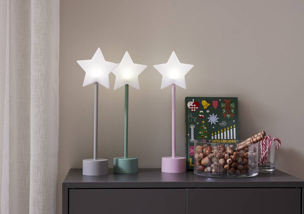 Lättplacerad stjärna som kan laddas om och om igen och få lysa året om.