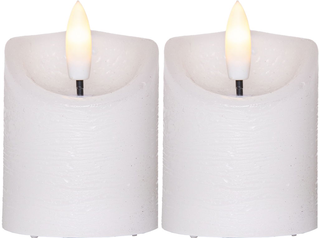 2p vita ljus med mycket naturtrogen låga som lyser med varmvitt sken.