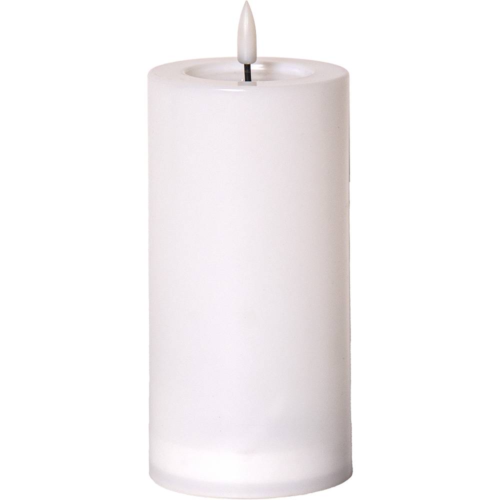 Vitt plastljus som passar bra att lysa upp i en lykta eller som dekoration på en uteplats eller en balkong.