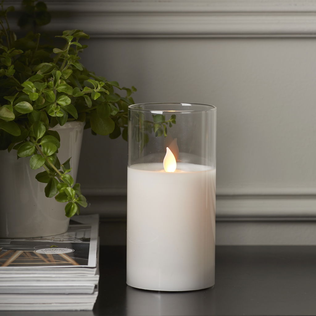 Stort batteridrivet LED-blockljus med naturtrogen låga och varmvitt sken.