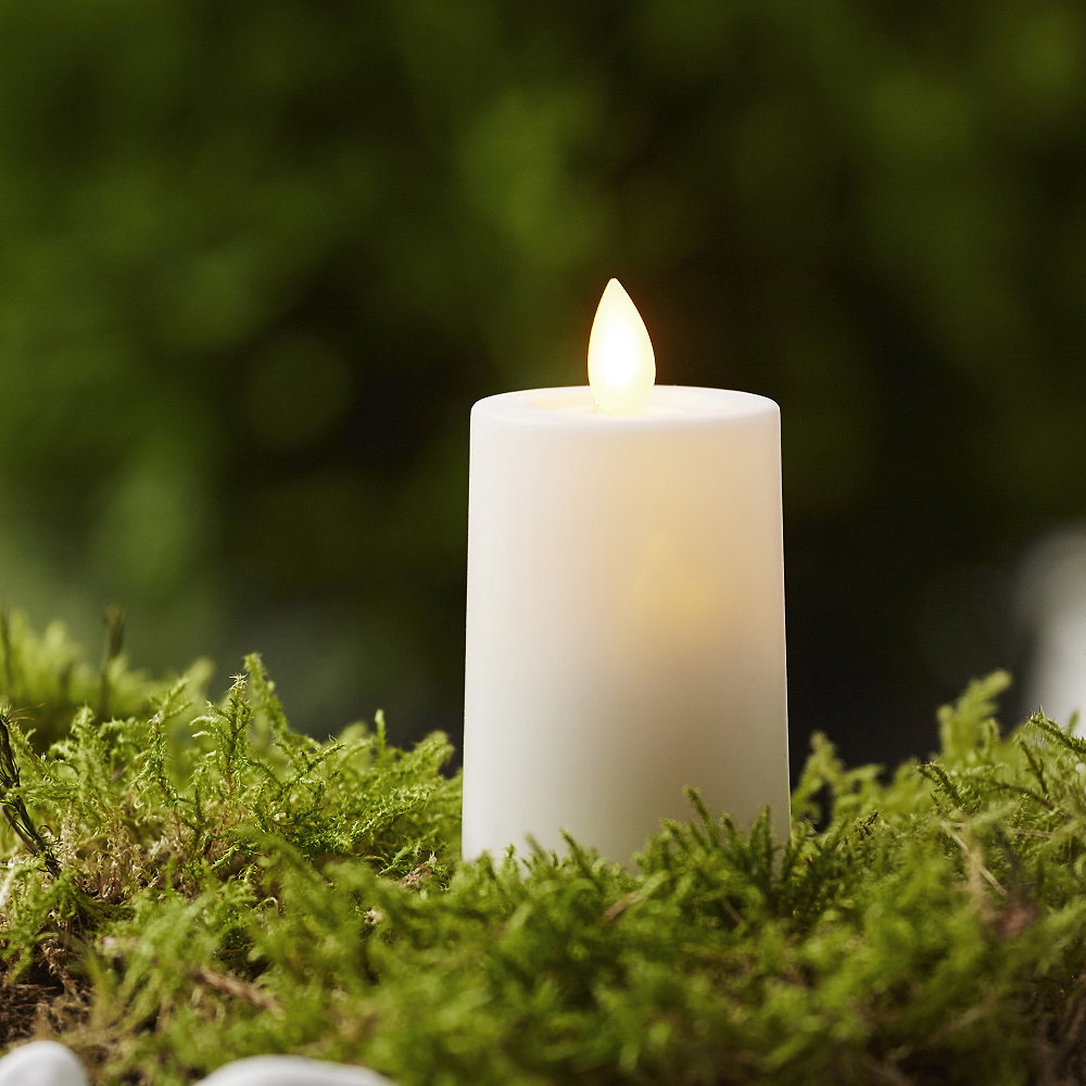 Stort batteridrivet LED-blockljus med naturtrogen låga och varmvitt sken.