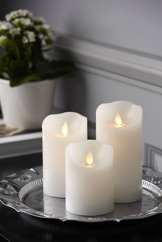 Verklighetstrogna ljus i vax med vickande låga som skapar ett mysigt och behagligt sken inomhus.