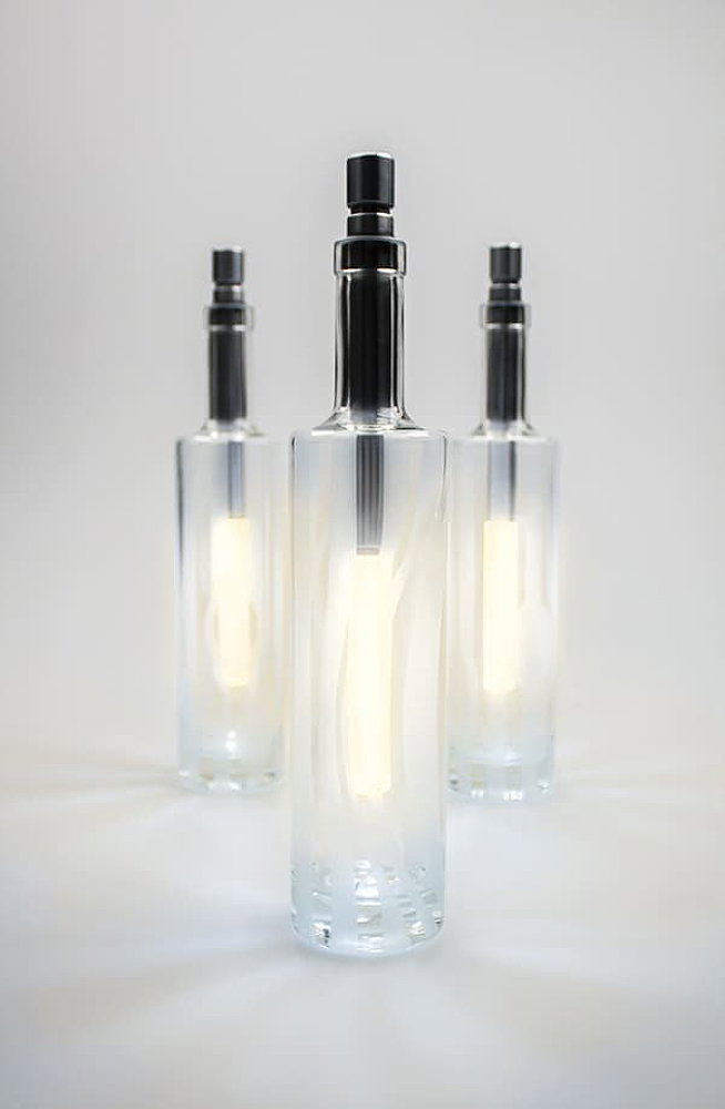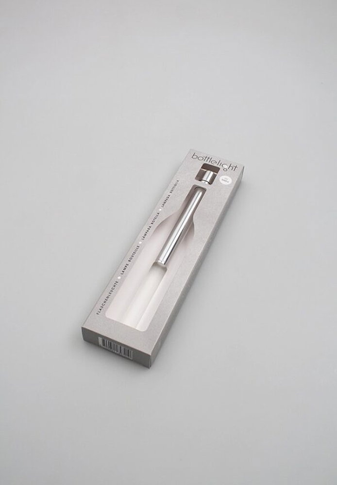Flasklampa som passar i alla vinflaskor eller andra flaskor med en standard flaskhalsdiameter på 17-20mm. Den lyser med ett varmvitt LED-ljus och är dimbar i två steg, 15/40lm. Drivs med tre 1,5V alkaliska eller laddningsbara NiMH-batterier. Enkel på/av-knapp samt dimbar genom att helt enkelt vrida på locket. Tillverkad i högkvalitativ aluminium och akrylglas.