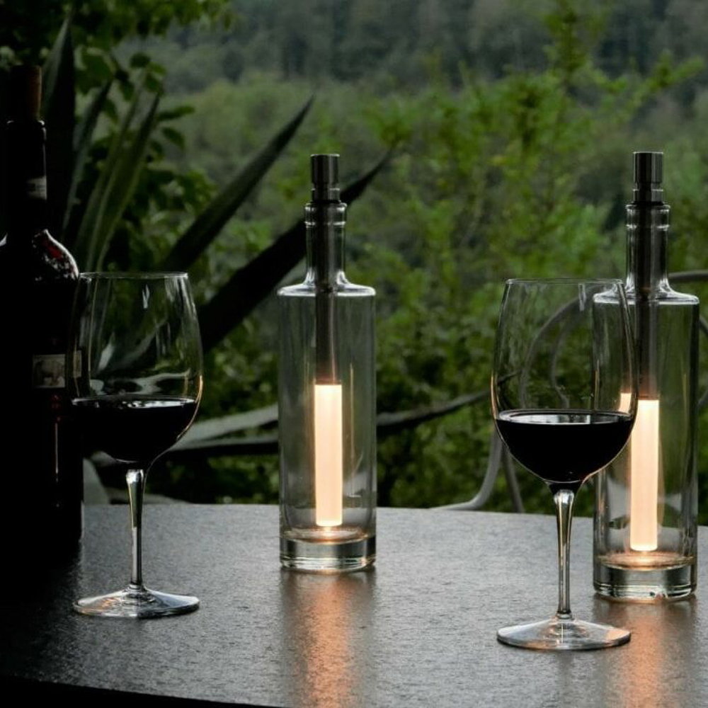 Flasklampa som passar i alla vinflaskor eller andra flaskor. Den lyser med ett kallvitt LED-ljus med 15lm.