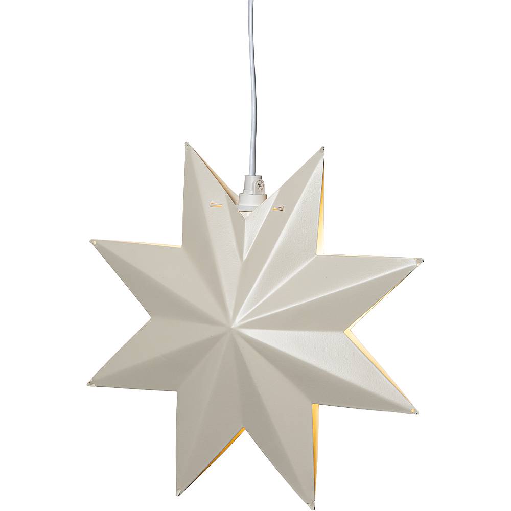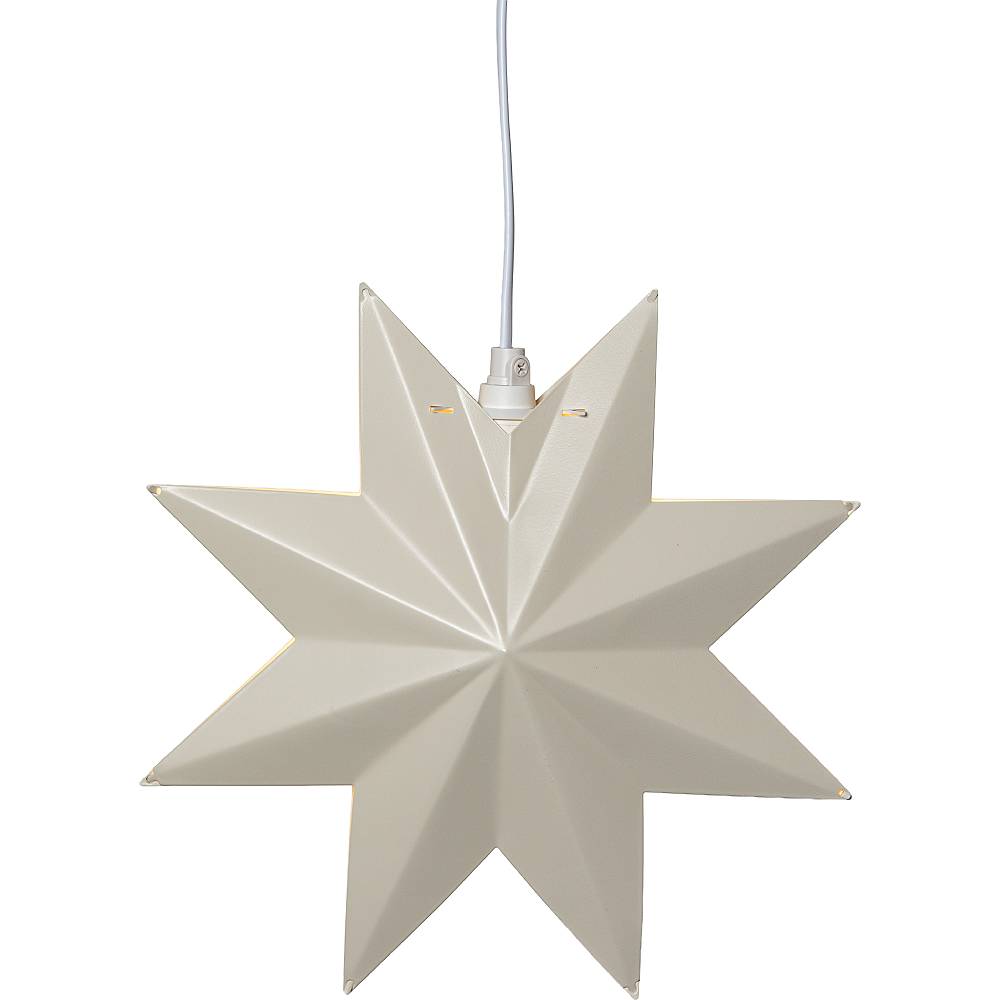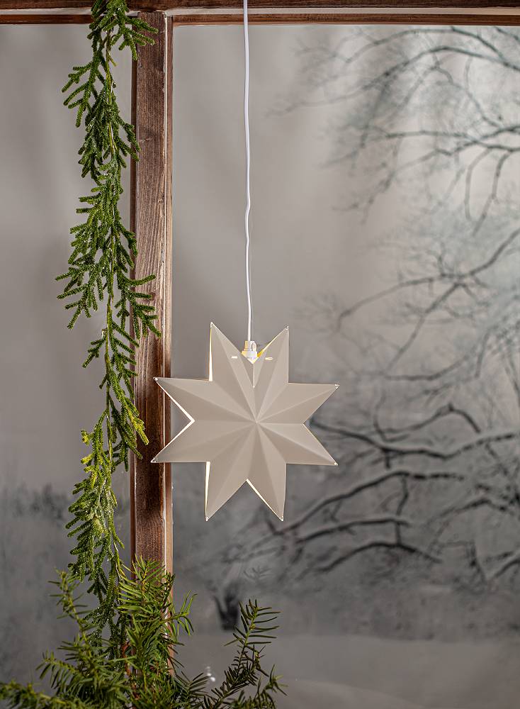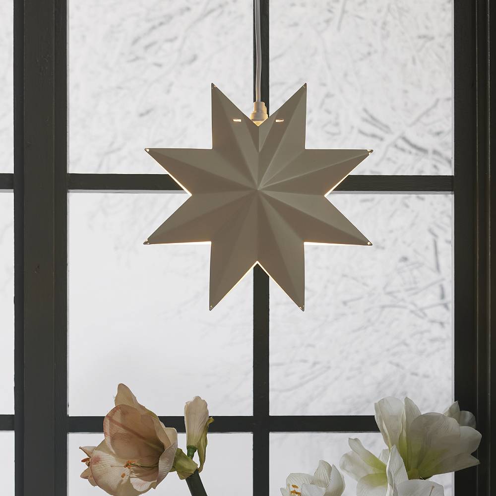 Vacker beige metallstjärna för inomhusbruk. Stjärnan lyser ut från sidorna och ger ett behagligt dovt sken. Stjärnan har plats för en ljuskälla.