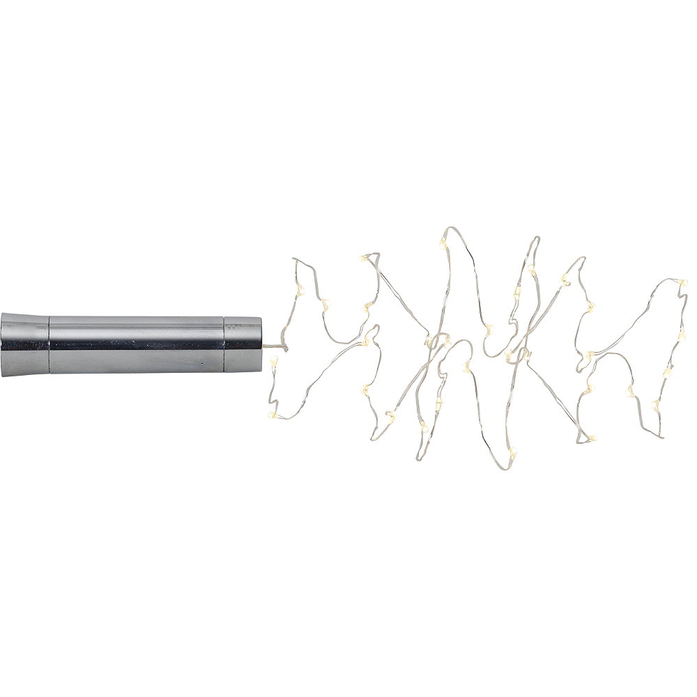 Ljusslinga 40 LED med varmvitt ljus och silverfärgad kabel som drivs av batteri.