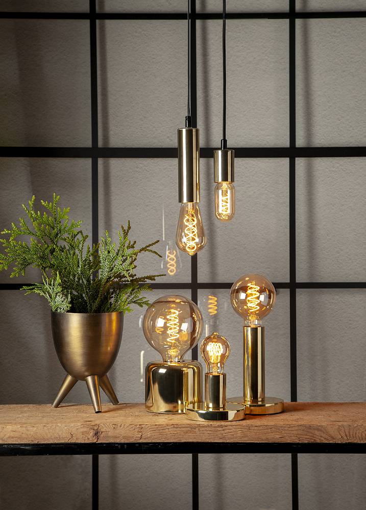 Dekorativ amberfärgad normallampa med 3-stegs klickdimring, ljusstyrkan ändras enkelt genom slå av och på strömbrytaren.