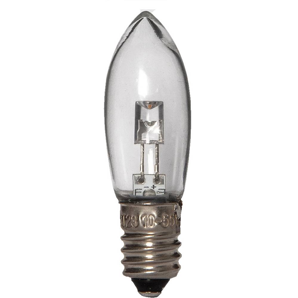 3-pack LED-reservlampor med klart glas och E10 sockel, 14-55V. Denna produkt passar till ljusstakar med 4-16 lampor och stickkontakt. För inomhusbruk.