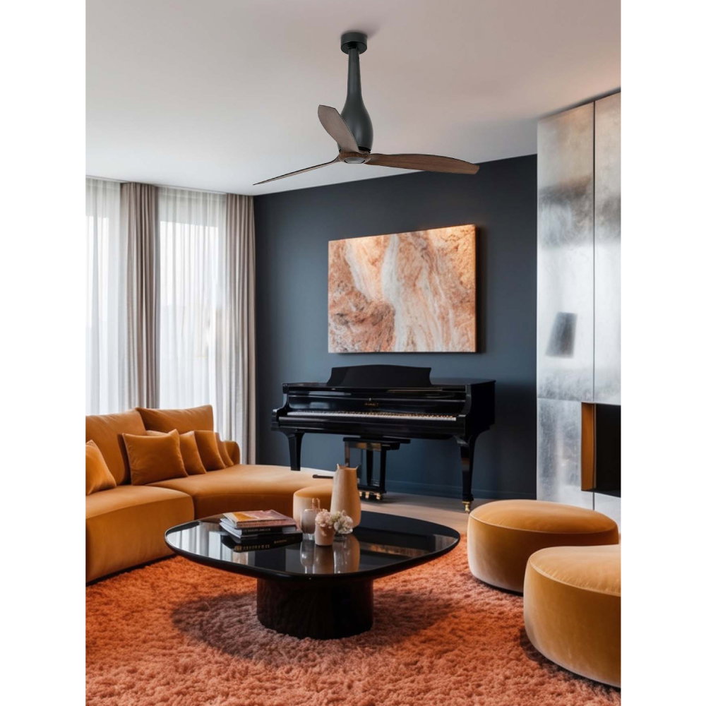 M 128cm Takfläkt med likströmsmotor tillverkad av stål och glas, bladen är av Mattsvart ABS.