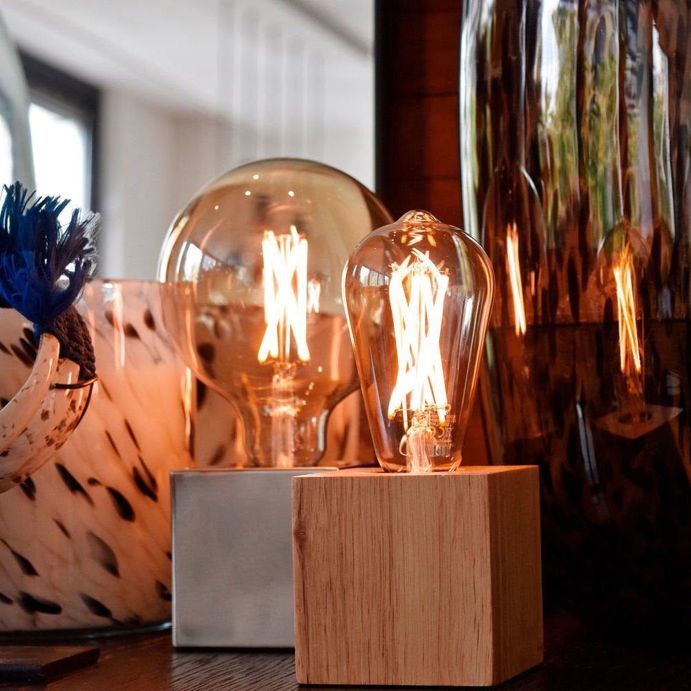 Filamenten i denna serie ger varmt ljus och ser ut som glödande volframtrådar men har LED lampans energieffektivitet