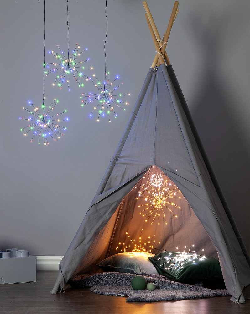 Hängande dekorativ firework för inomhusbruk. Batteridriven med timerfunktion.