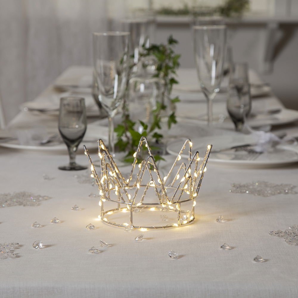 Vacker inomhusdekoration i form av en krona. En dew drop slinga är lindad runt formen.