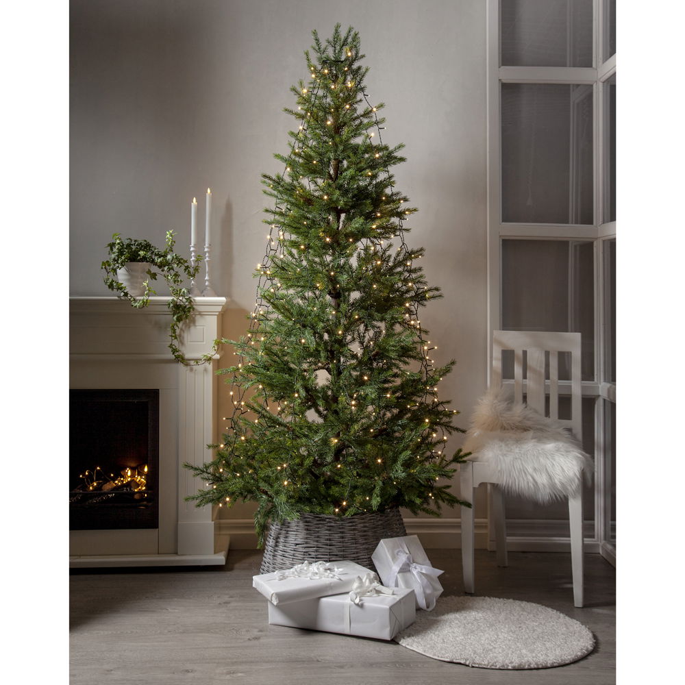 Slingan är ca 2 meter hög med 8 strängar som delar sig för att få en jämn spridning av lysdioderna. Perfekt för din julgran både inne och utomhus.
