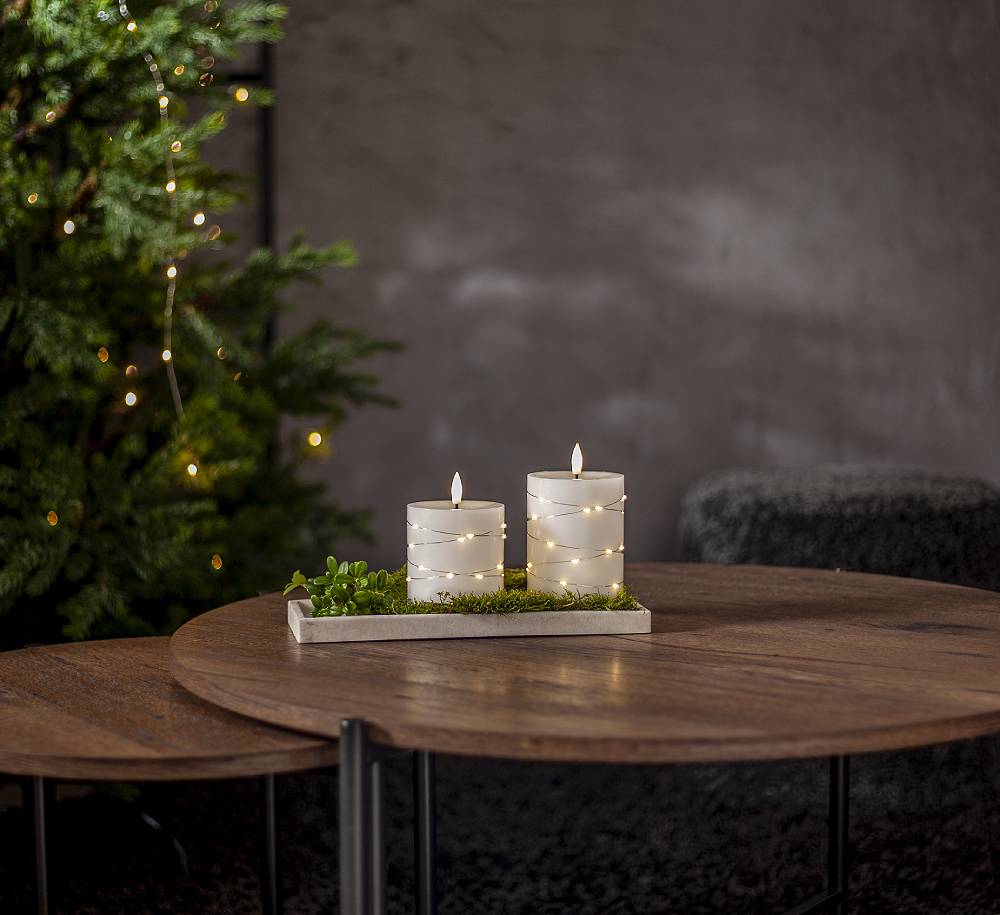 Naturtroget batteridrivet blockljus, drivs av 2 AA batterier.
