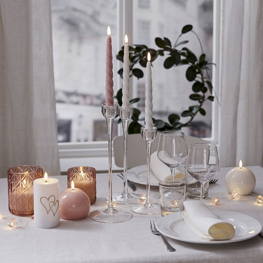 Blockljus med naturtrogen låga Flamme Soft, drivs med 2 AA batterier.