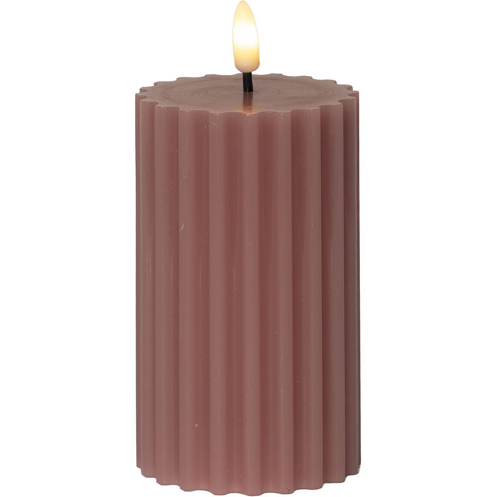 Flamme Stripe är ett blockljus gjord av rosavax med en räfflad-randig yta.