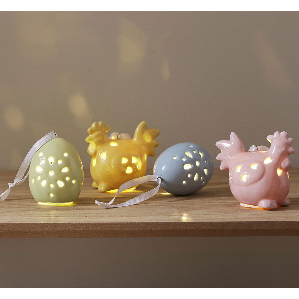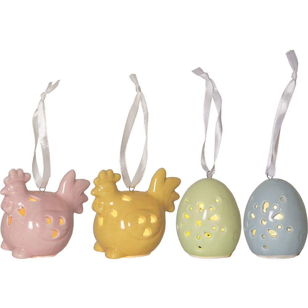 Dekorativ påskdekoration i set av 2 st påskkycklingar och 2 st ägg i blank porslin.