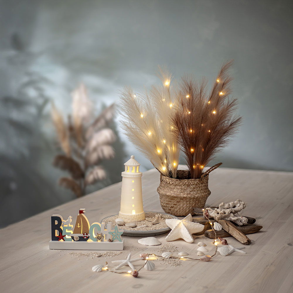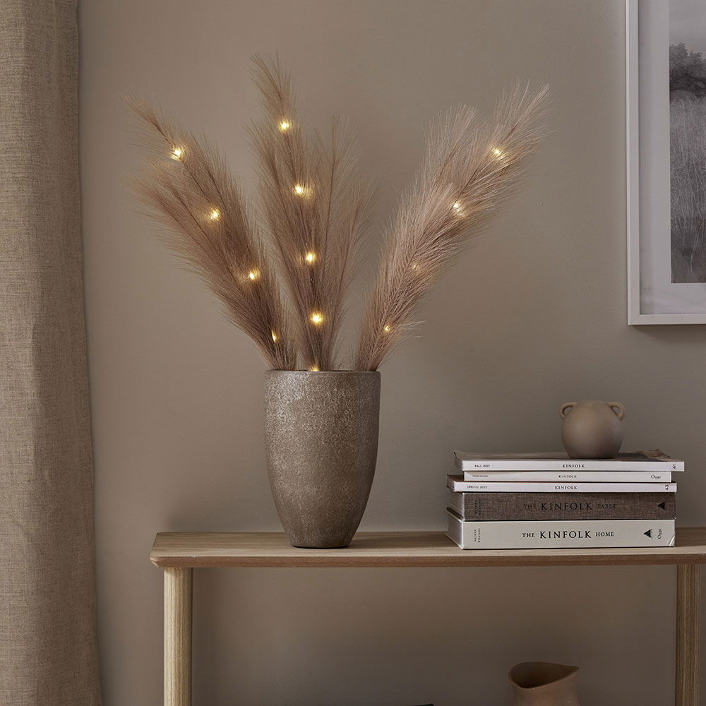 Kommer med tre kvistar monterade på en kabel, på varje kvist finns 5 varmvita LED för ett behagligt och stämningsfullt ljussken.