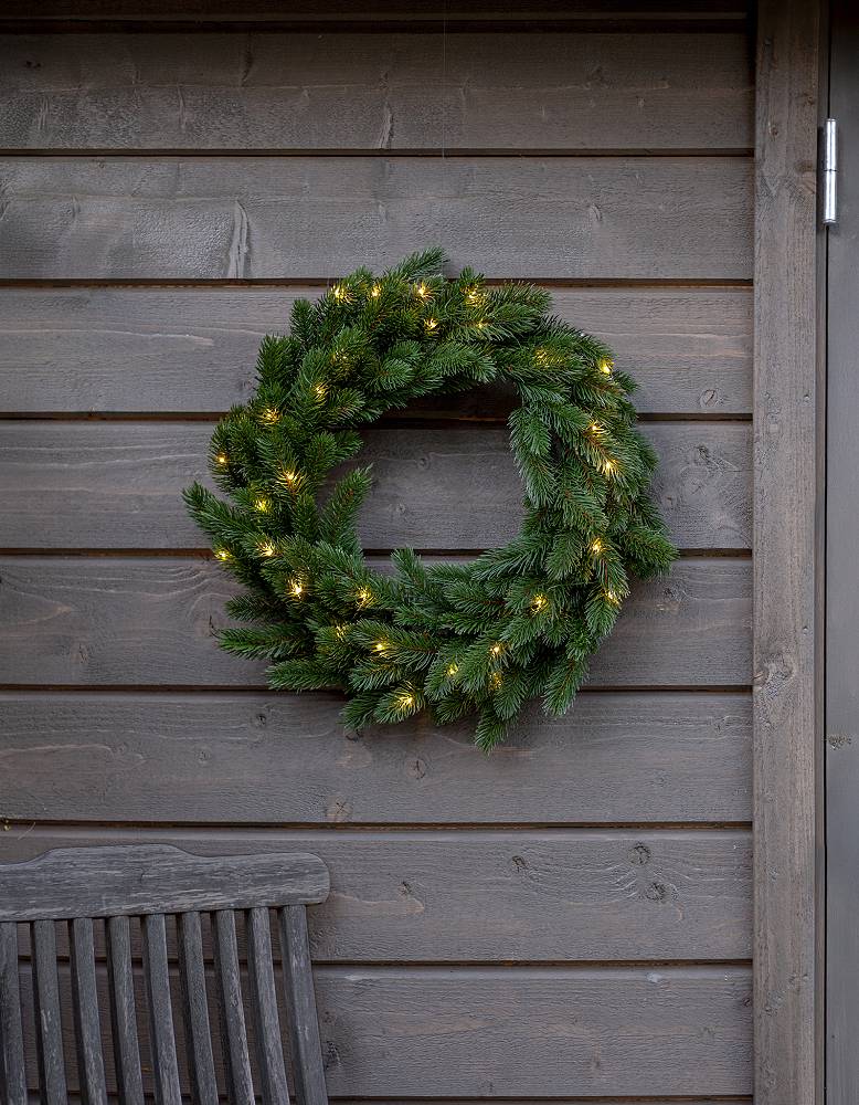 Denna krans är ca 50cm och lyser upp med 30 varmvita dew-drop led.