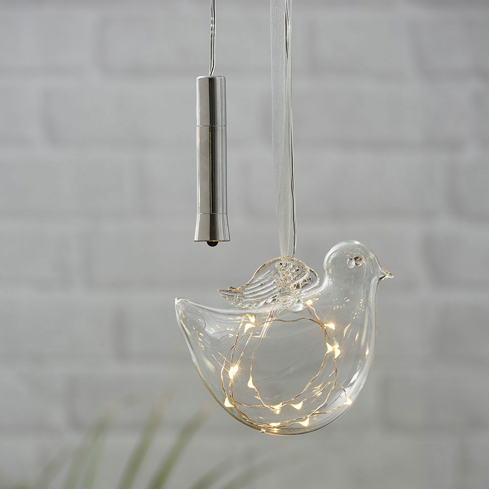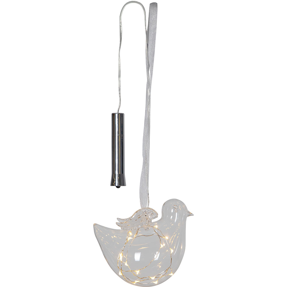 Glasfiguren är batteridriven och har varmvitt ljus.