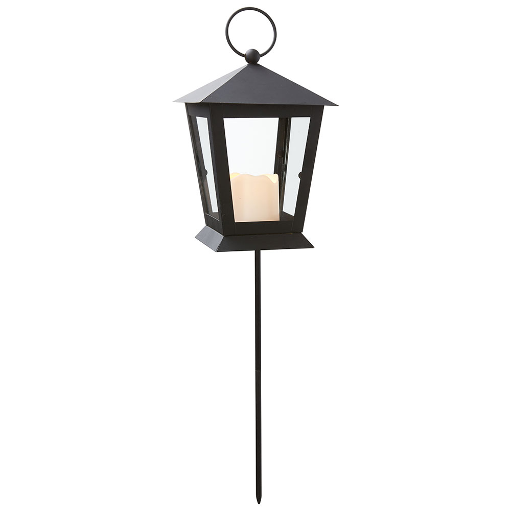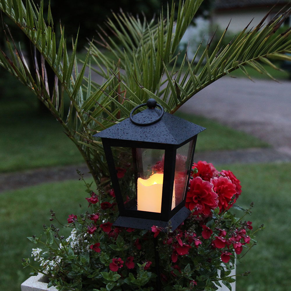 Svart lykta i metall med LED-belysning.