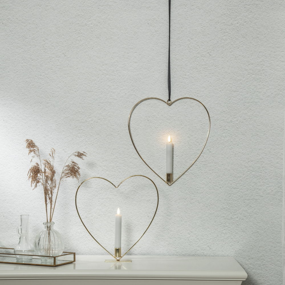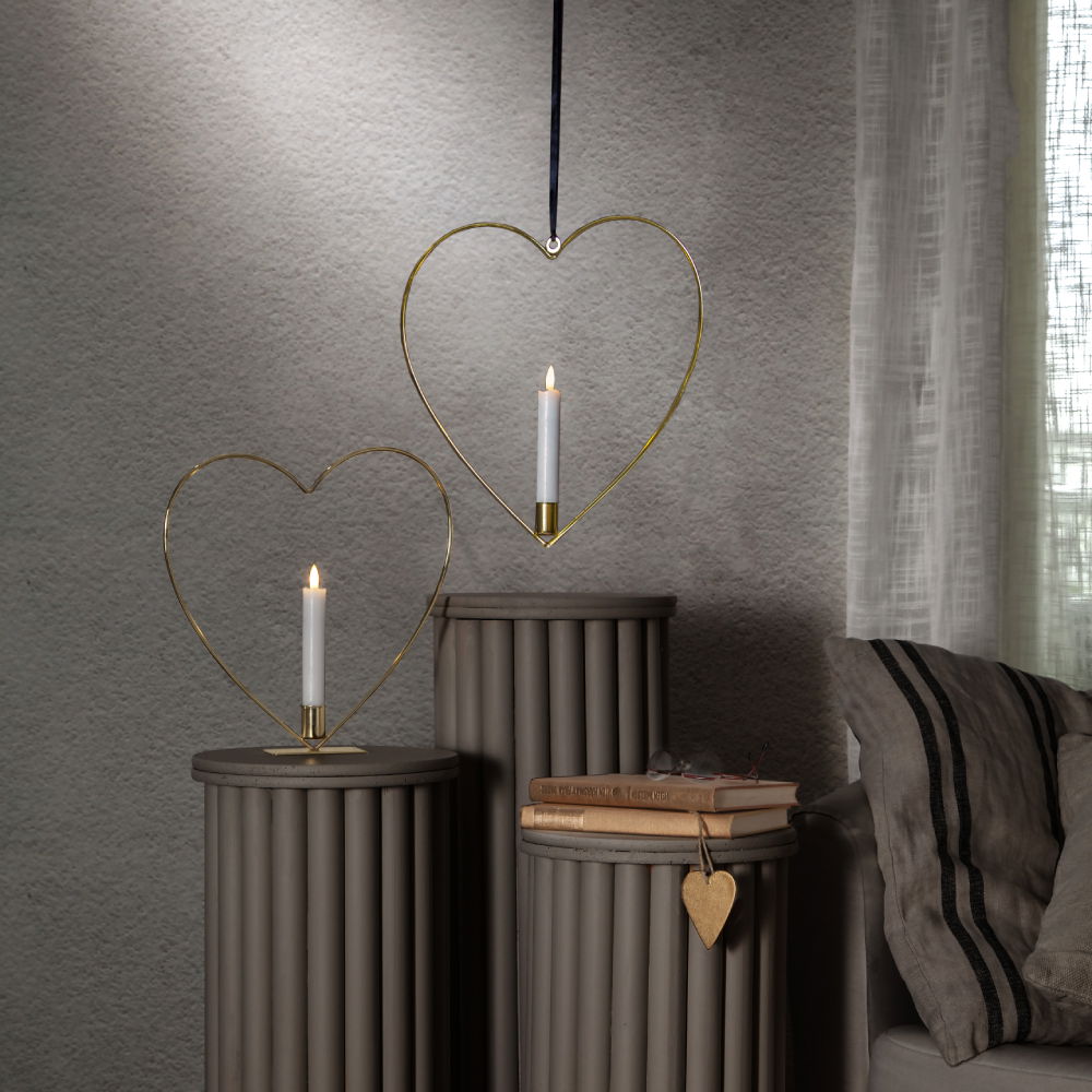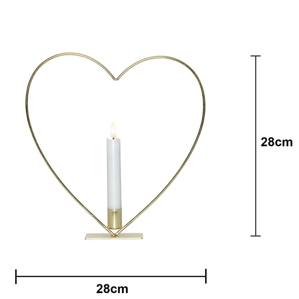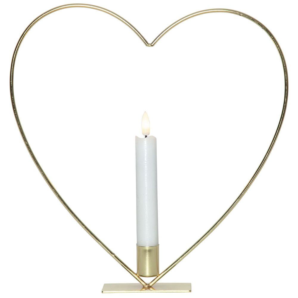 28cm mässingsfärgat hjärta för bord med vårt fina antikljus Flamme i 15cm som medföljer.