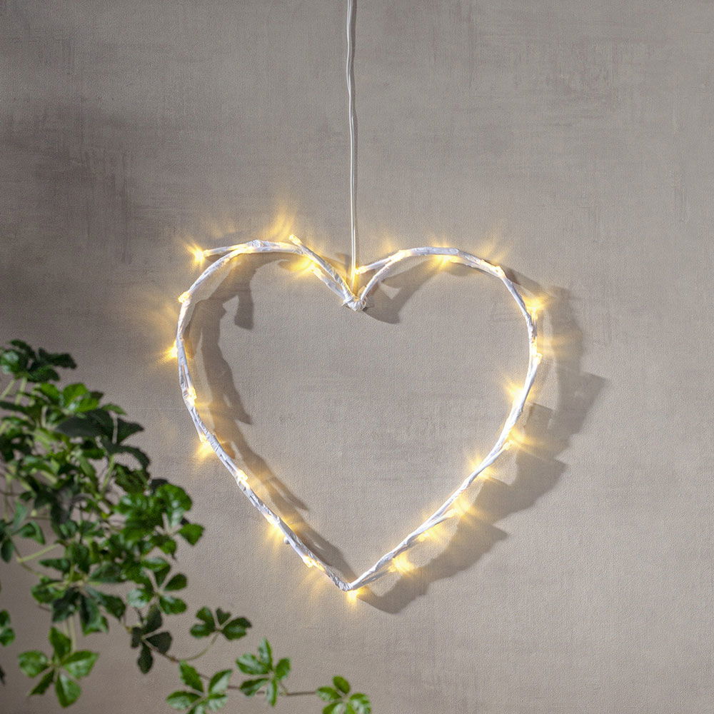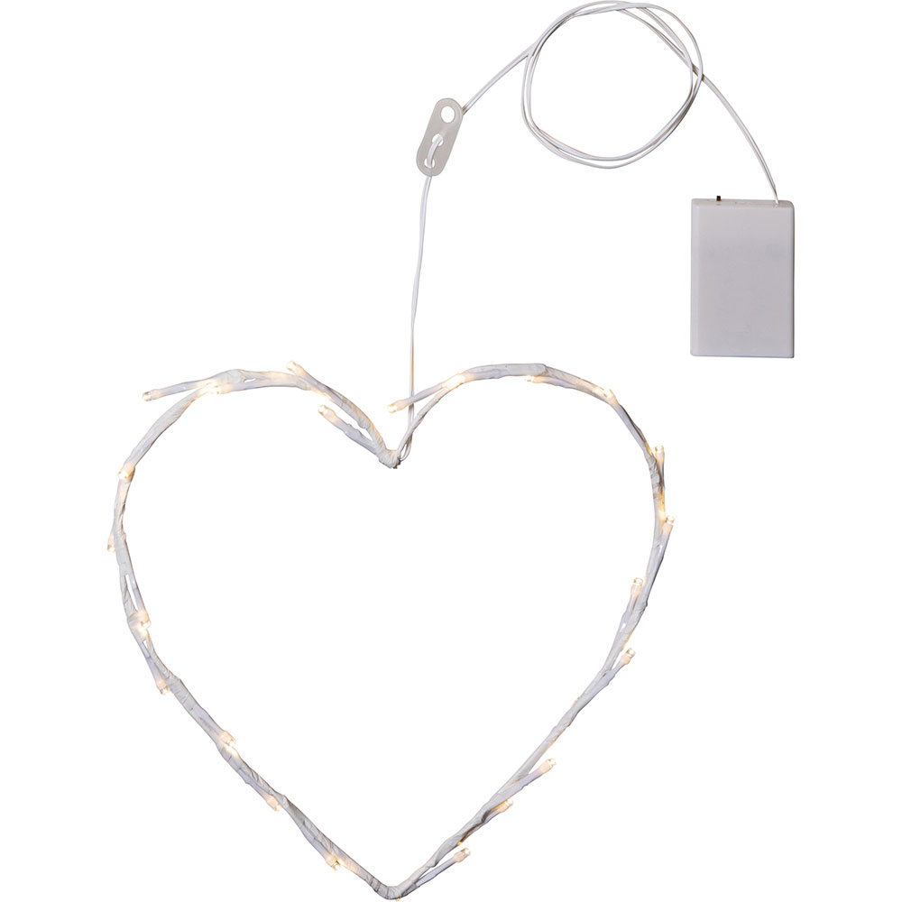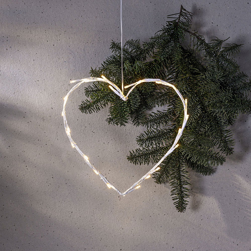 Stilren batteridriven vitt hjärta med små LED-ljuspunkter som sprider ett mjukt sken – perfekt att dekorera med till jul, advent eller under den mörka årstiden, och utrustad med praktisk timerfunktion