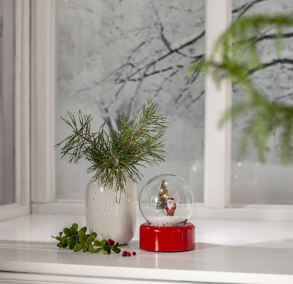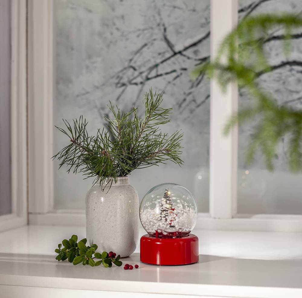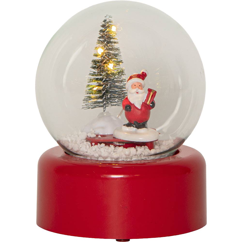 Snögloben spelar 8 jullåtar och en motor driver runt snön som yr.