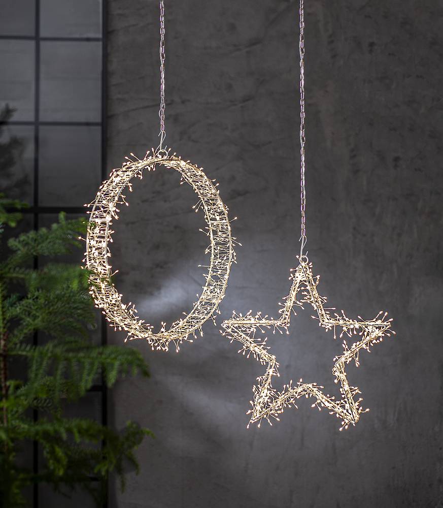 Vacker hängande dekor med små LED-ljuskällor som ger en glittrande glans.