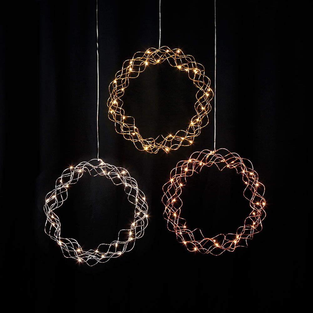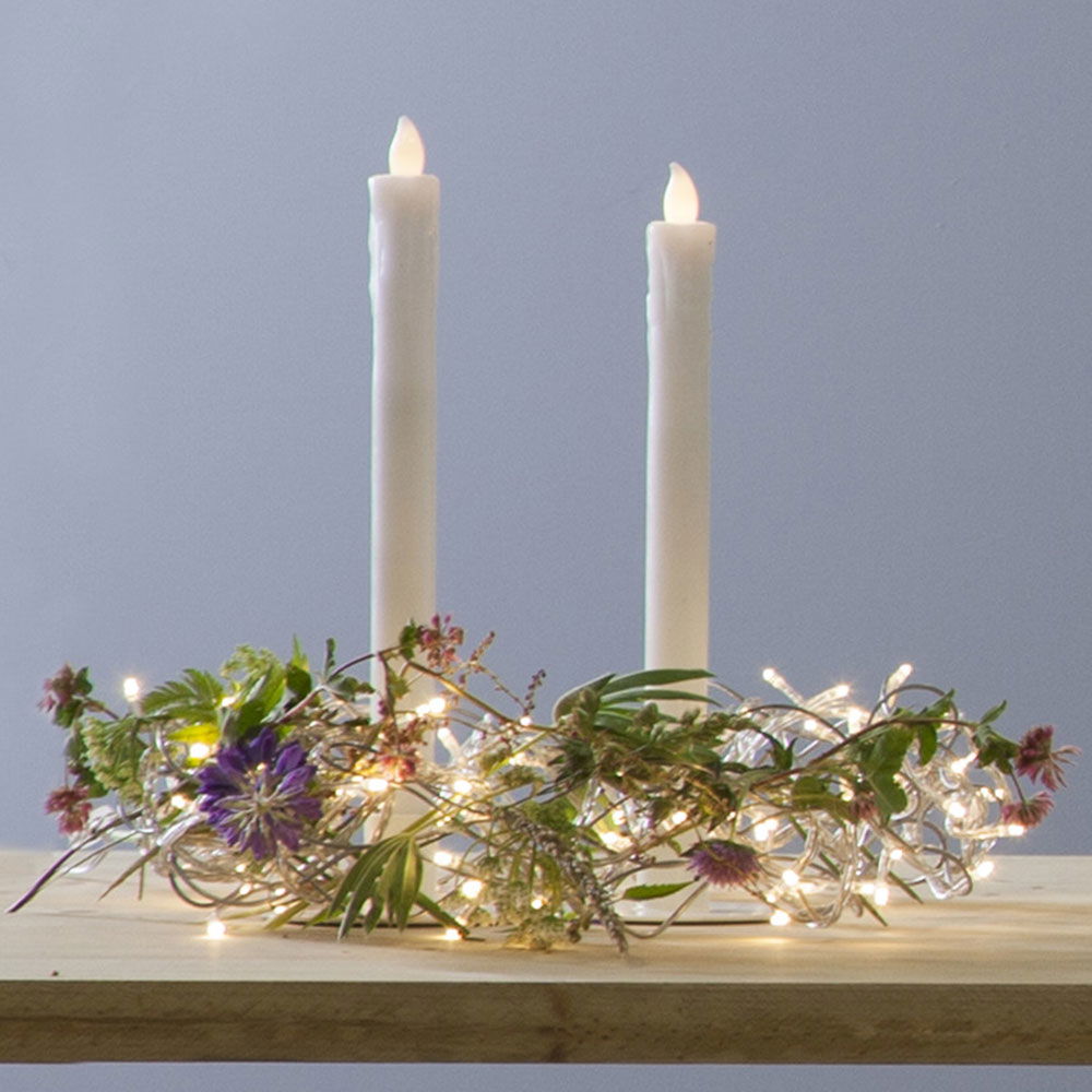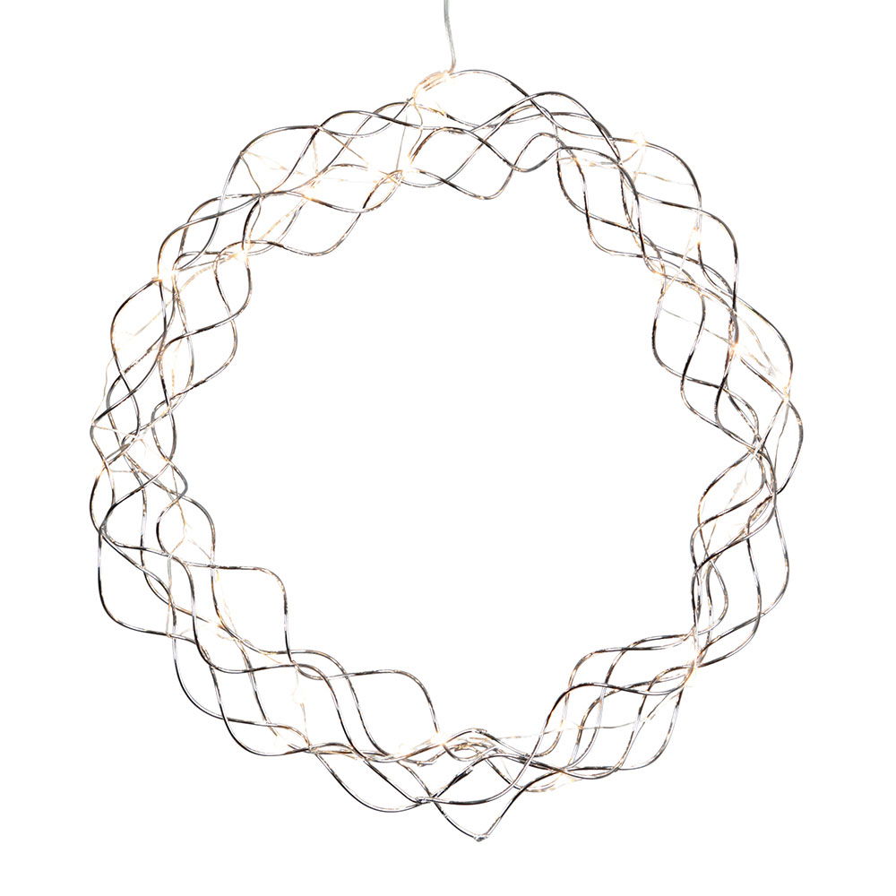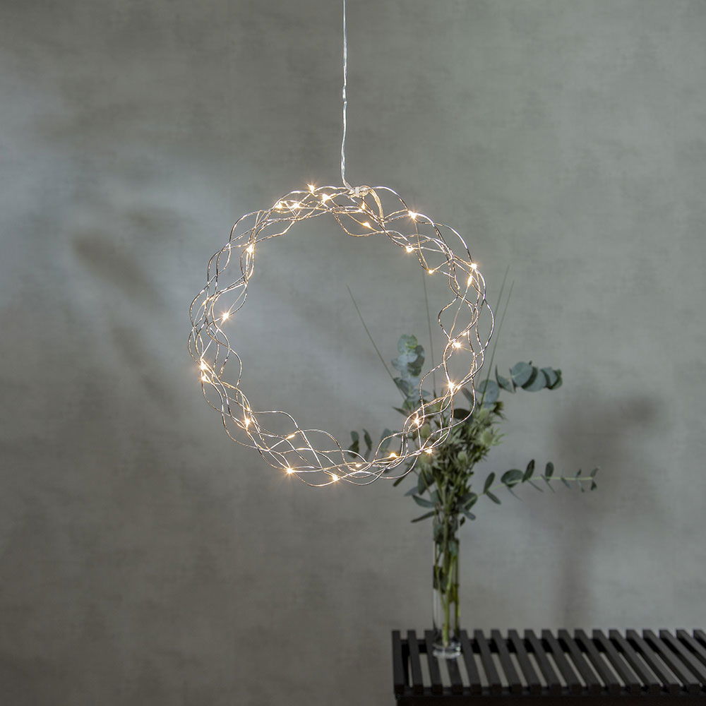 Dekorativ krans i krom med dew drop ljusslinga för inomhusbruk.