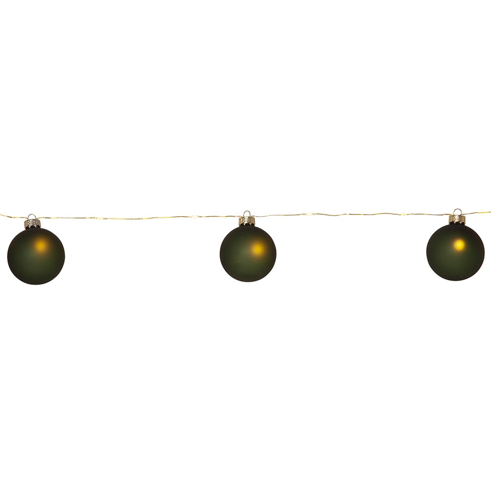 Vacker batteridriven ljusslinga med 8 st gröna glaskulor.