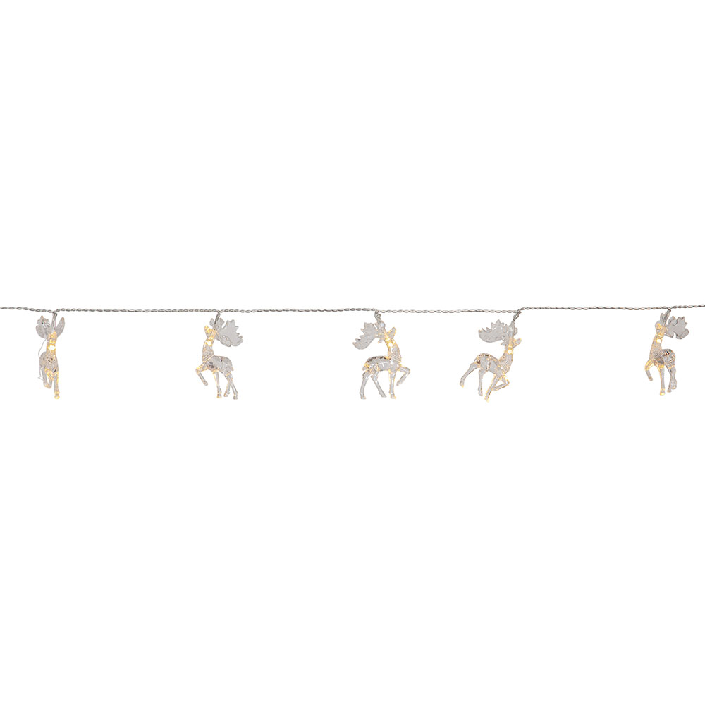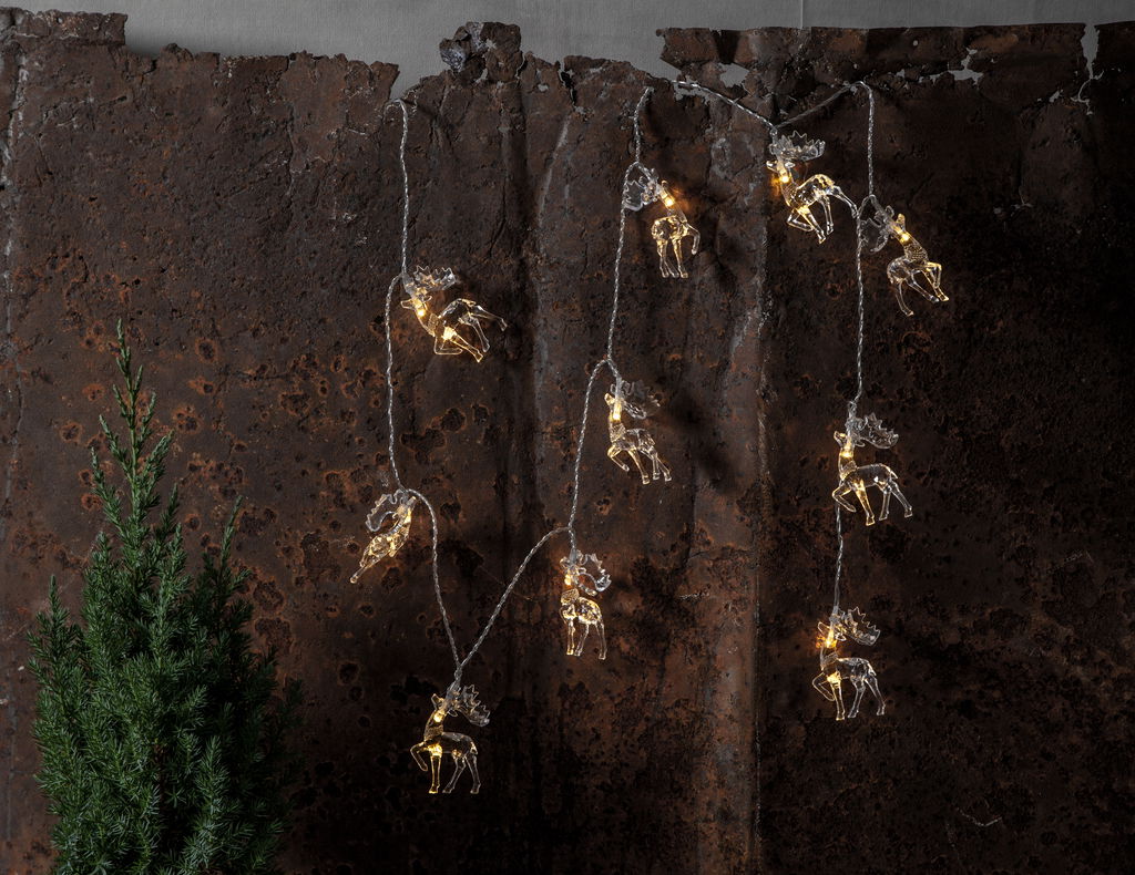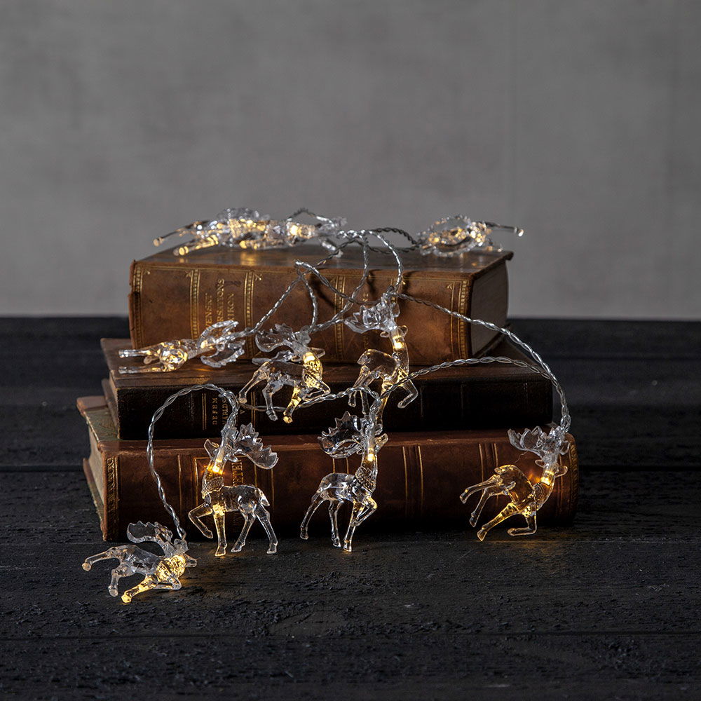 Batteridriven ljusslinga med transparenta dekorationer i form av renar.
