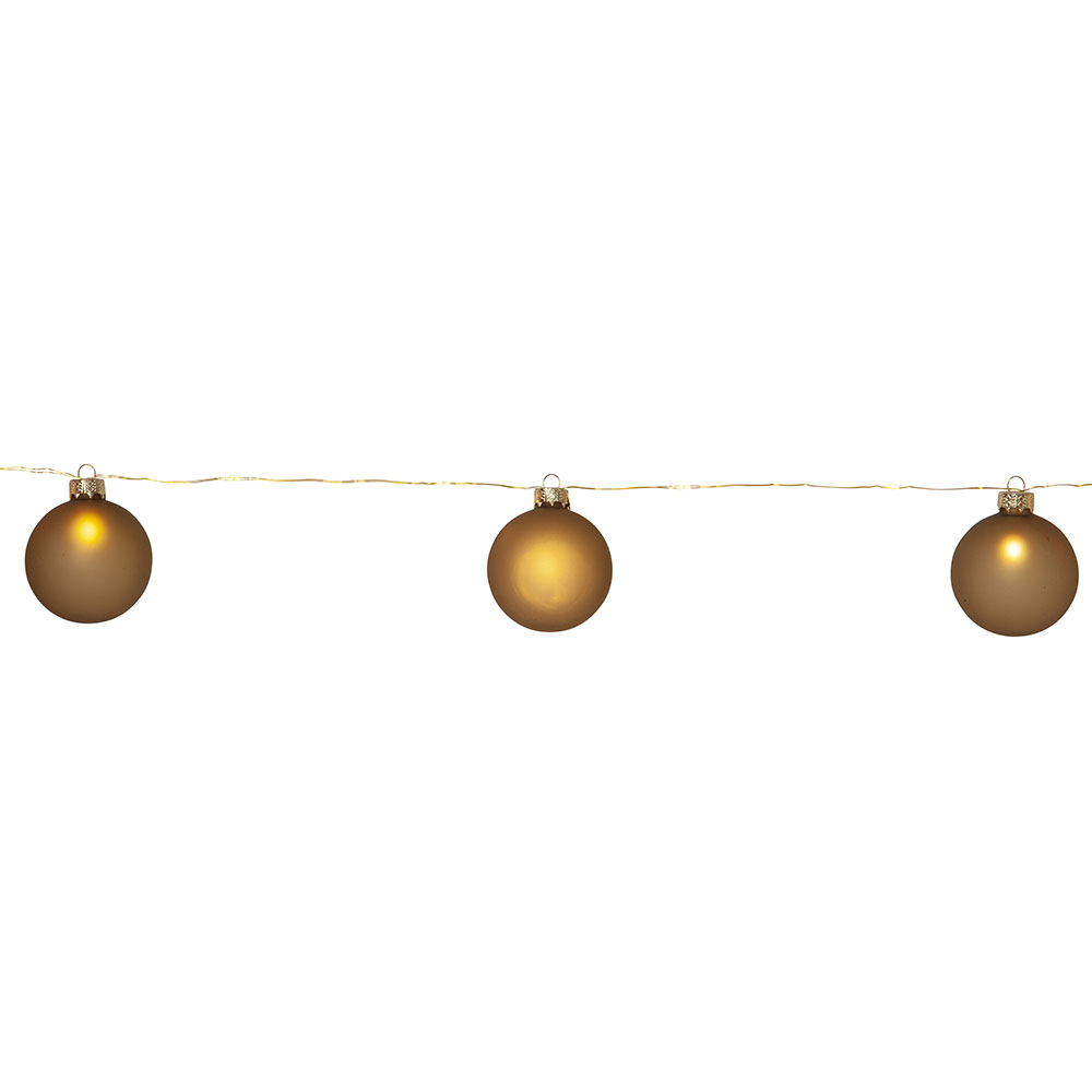 Vacker batteridriven ljusslinga med 8 st beige glaskulor.
