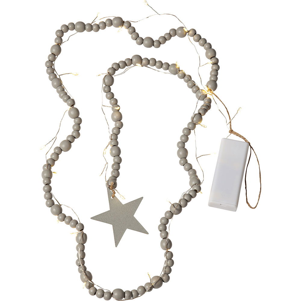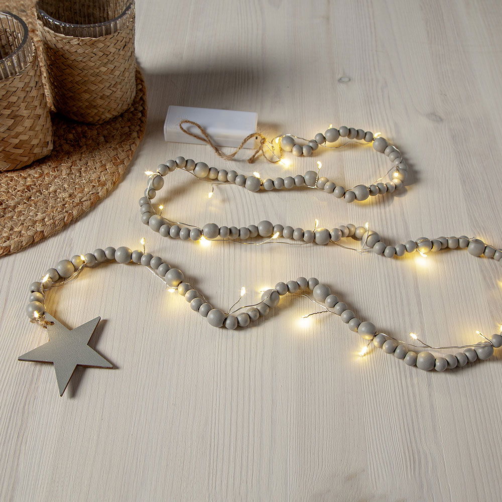 Exklusiv ljusslinga för inomhusbruk med träpärlor.