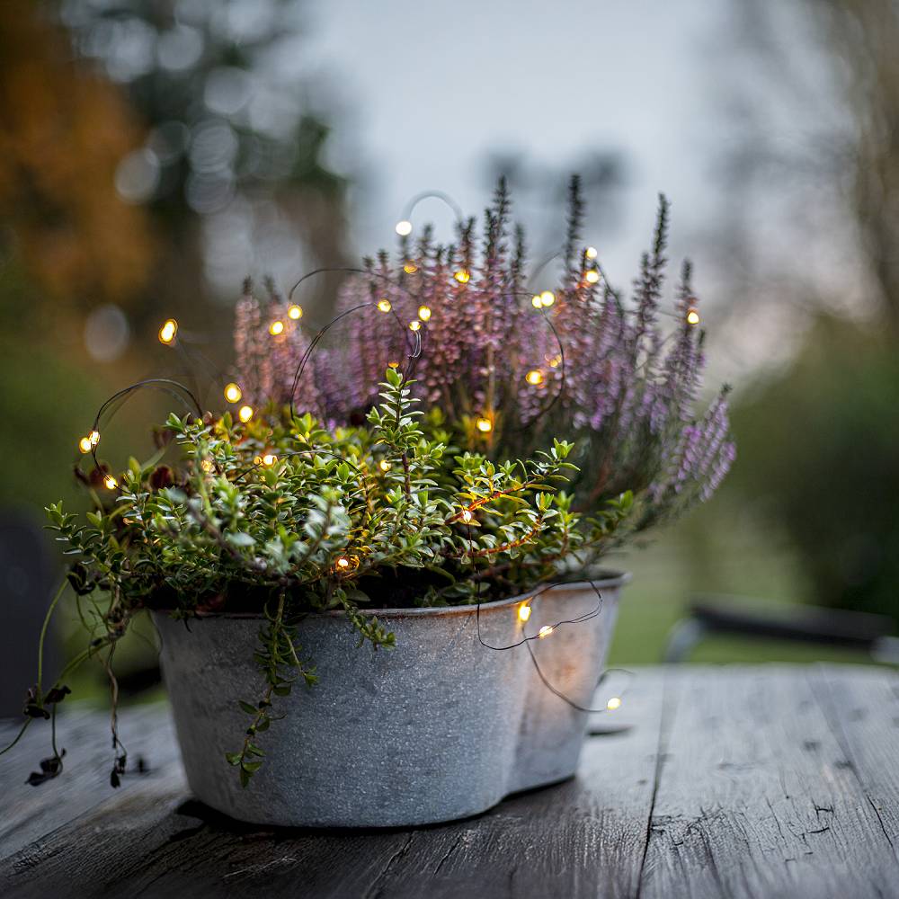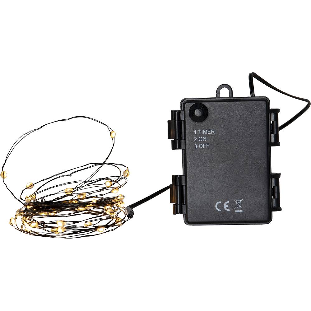 Batteridriven ljusslinga med 40 stycken LED dew drops, med batteridosa för utomhusbruk