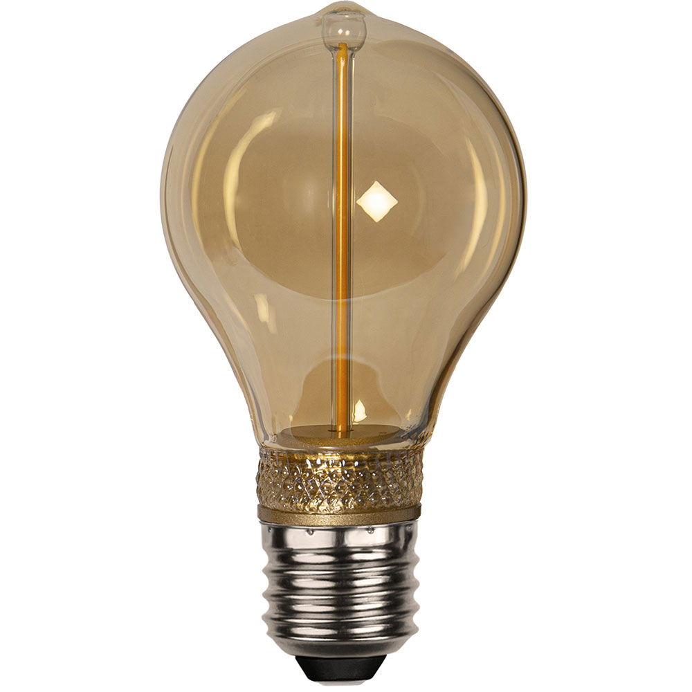 Dekorativ amberfärgad normallampa med 3-stegs klickdimring, ljusstyrkan ändras enkelt genom slå av och på strömbrytaren.