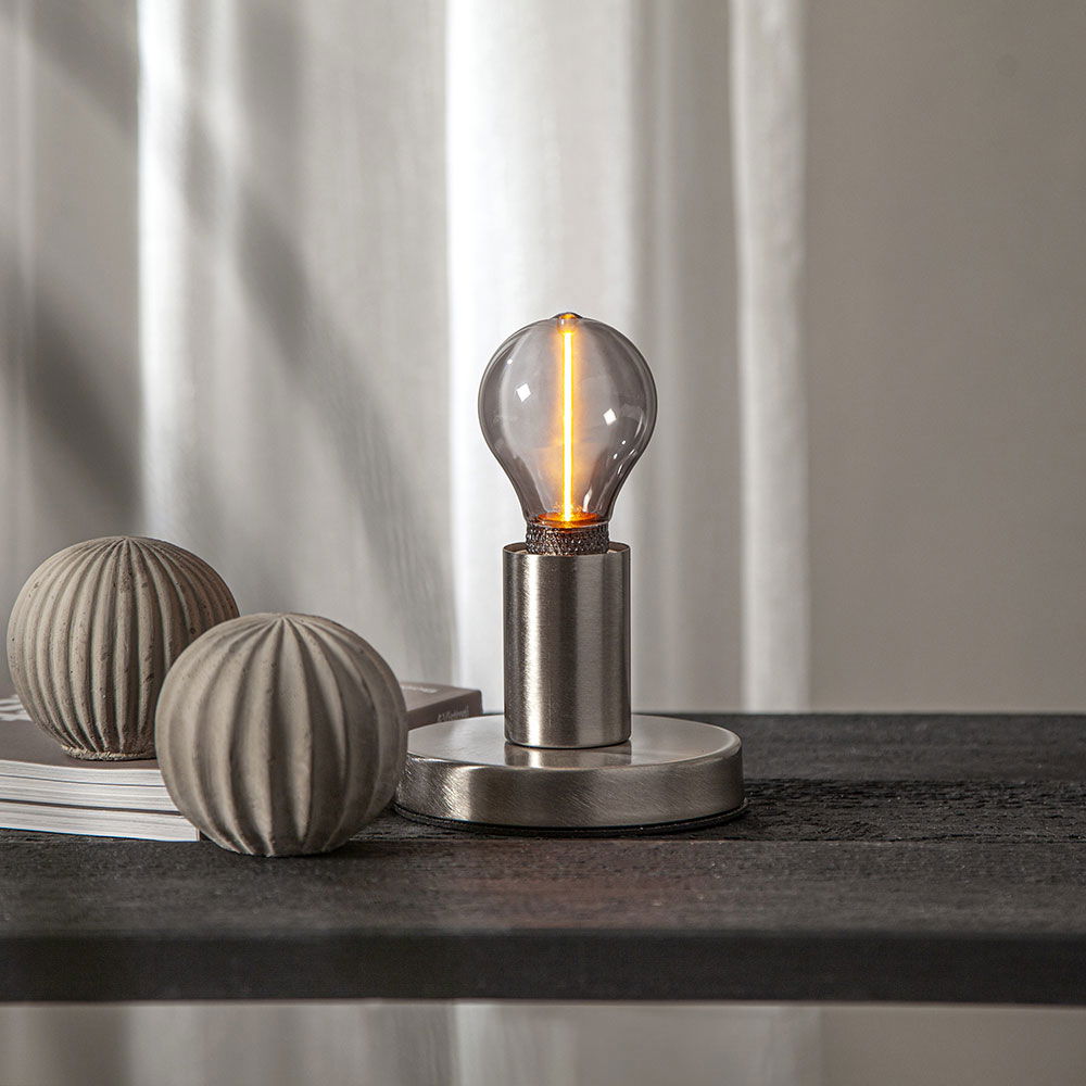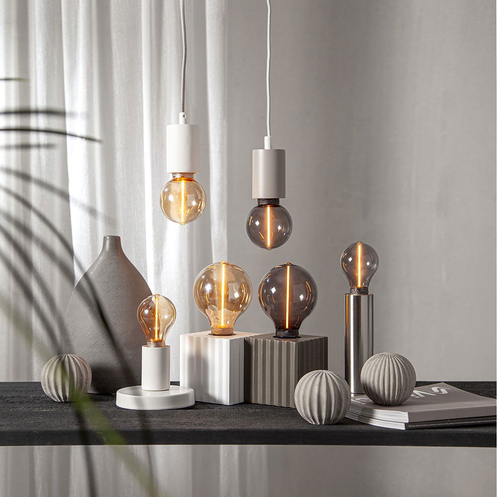 Dekorativ rökfärgad normallampa med 3-stegs klickdimring, ljusstyrkan ändras enkelt genom slå av och på strömbrytaren.