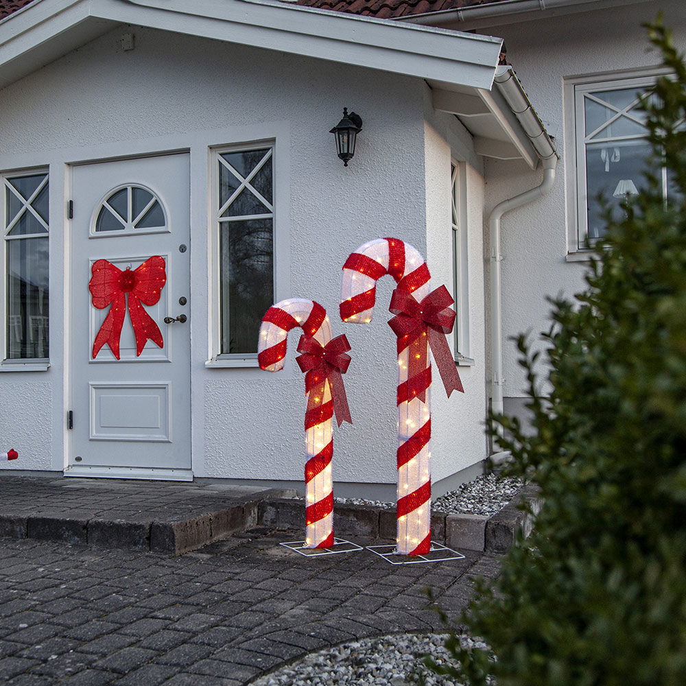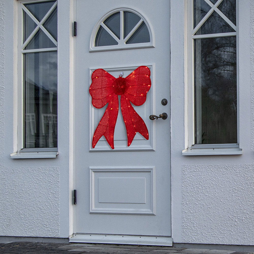 Röd metallrosett med 60 varmvita LED-ljus.