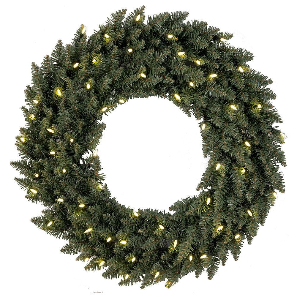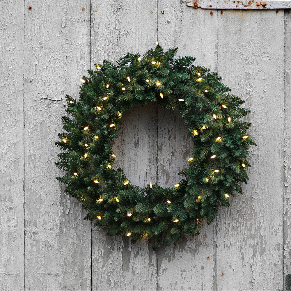 Grön krans med 60 varmvita LED-lampor. Kransen ger ett fint och inbjudande sken i mörkret. Dekorera med kransen inomhus eller utomhus exempelvis mot en vägg eller på en dörr.