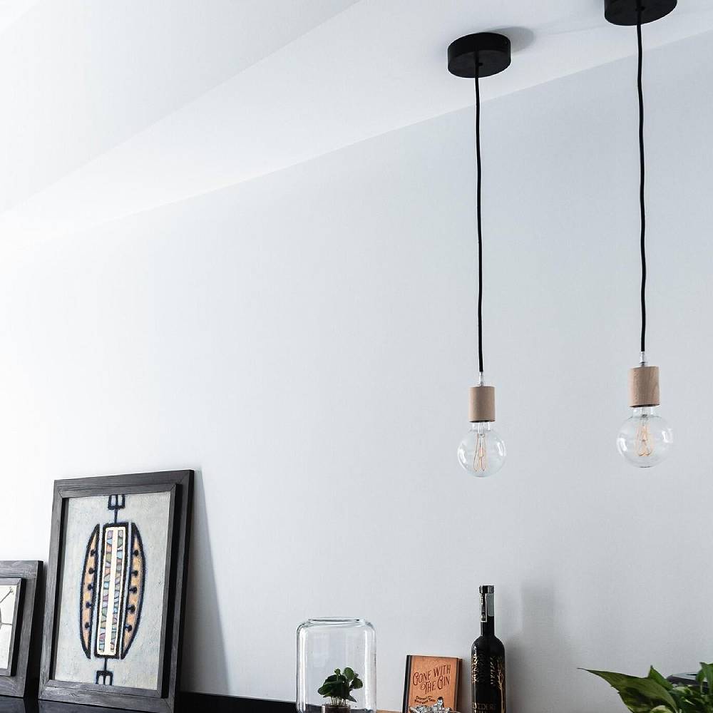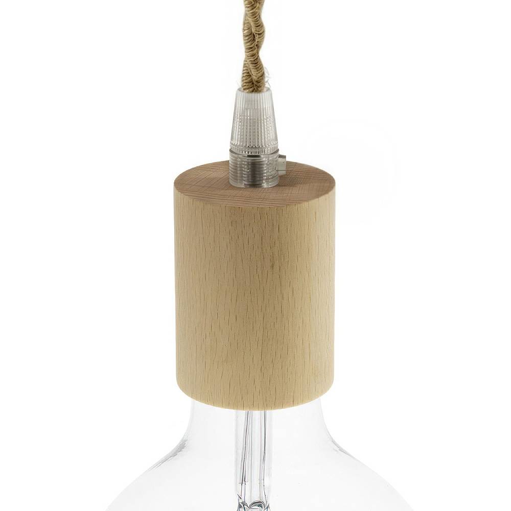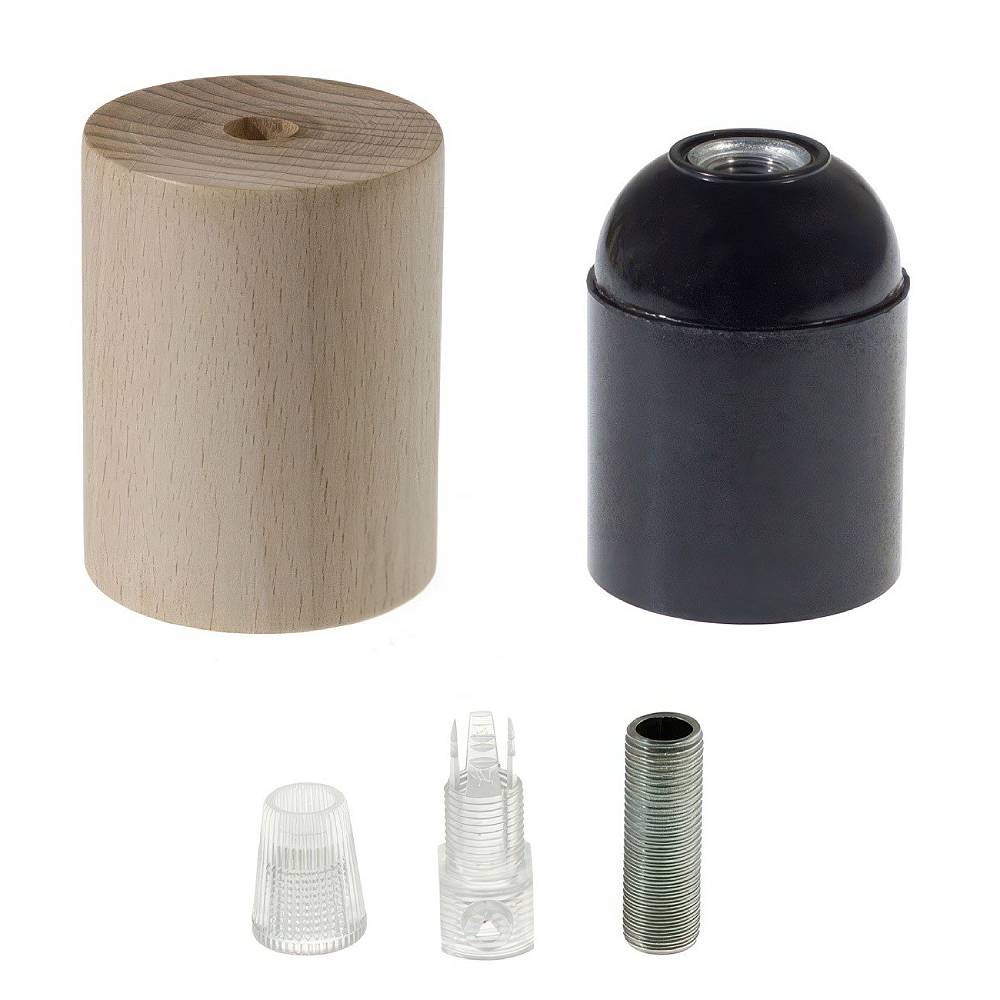 Ett E27-lamphållarkit i trä används för att montera en vägg-, bords- eller taklampa med valfri rund eller flätad kabel.