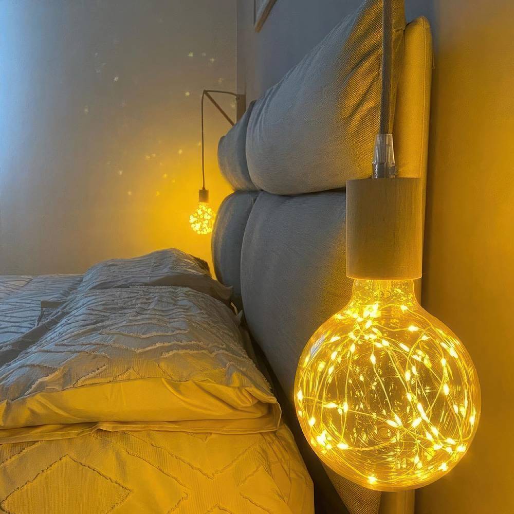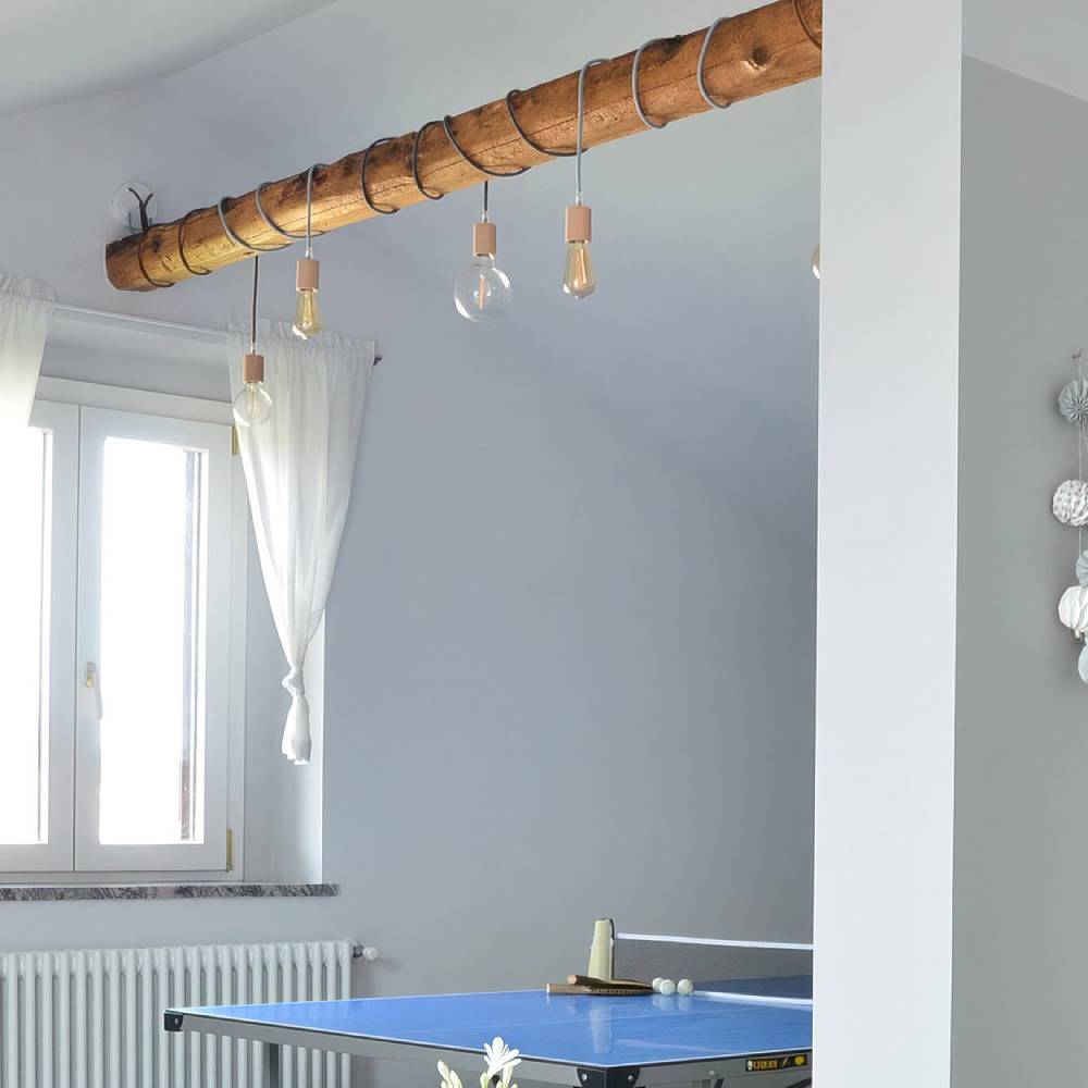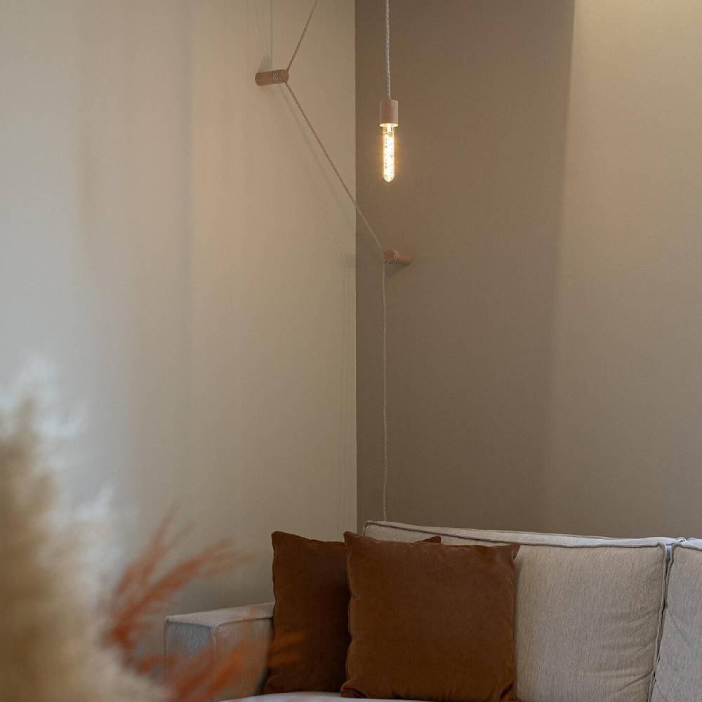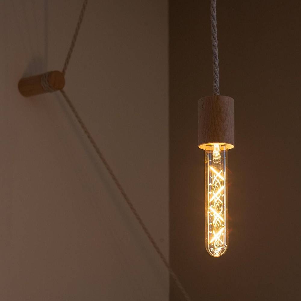 Ett E27-lamphållarkit i trä används för att montera en vägg-, bords- eller taklampa med valfri rund eller flätad kabel.