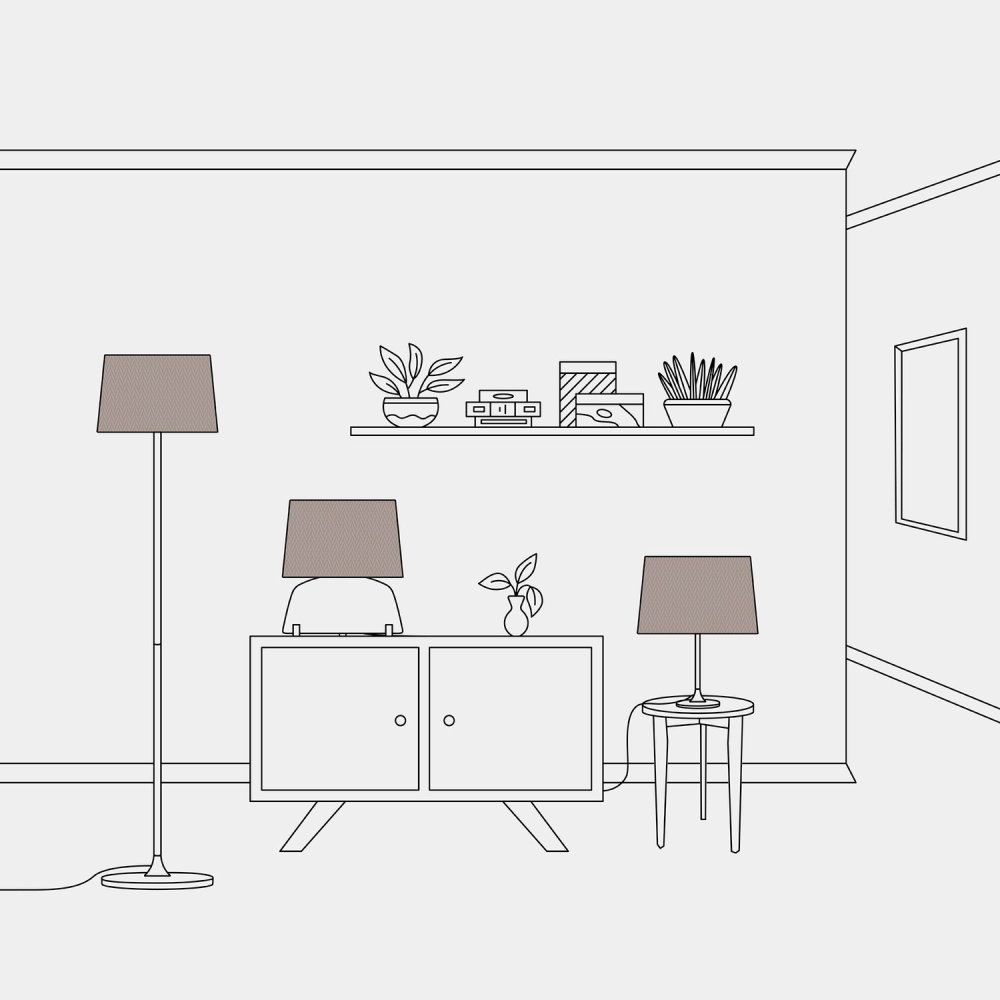 Sätt ihop din nya bordslampa genom att kombinera lampskärmen Athena med tillbehör, ljuskällor och tygklädda kablar