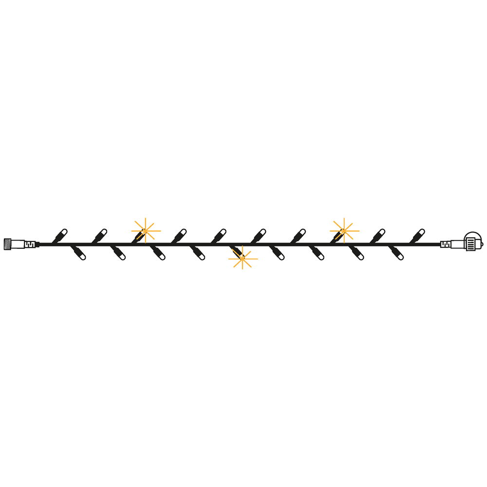 Ljusslingan är 5m lång med varmvitt ljus. För utomhusbruk. Startkabel ingår ej, köps separat.