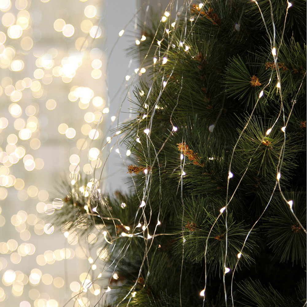 Underbar dekorationsslinga med dew drop. Ljusslinga har 125 kallvita LED-ljuskällor som avger ett vackert sken.