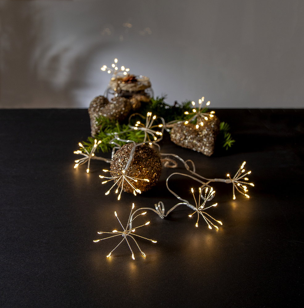 Vacker batteridriven ljusslinga med 96 LED dew drops fördelade på 8 blommor. Kan användas vid diverse dekorationer, vid tex dukningar, blomsterarrangemang, julgranen och mycket mer.