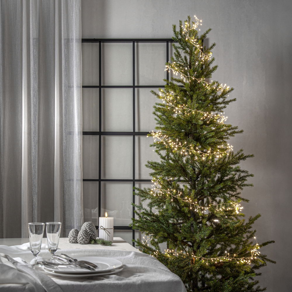 Krabbljusslinga med 720 kallvita LED Dew Drops på 7,2 m silverkabel – perfekt för julgran, dukning eller annan dekor