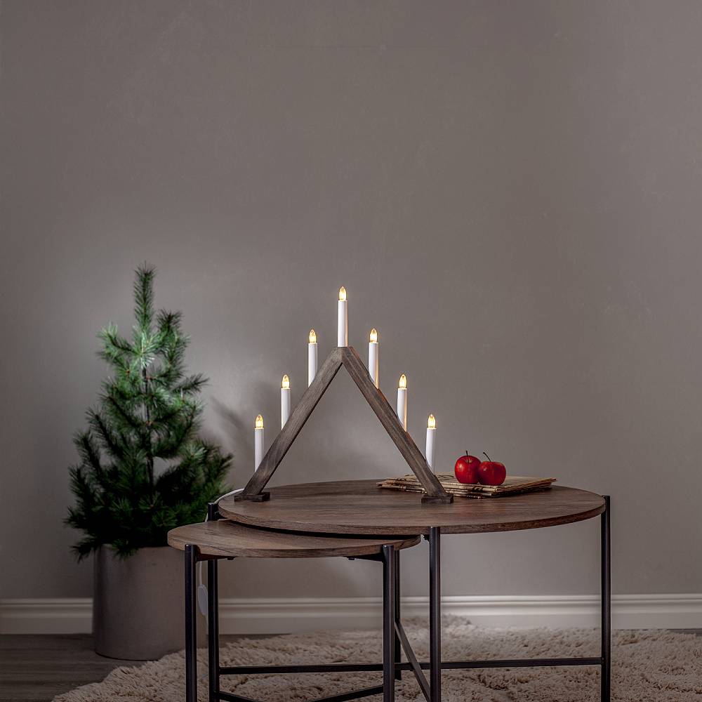 Valnöts färgad, elegant och modern adventsljusstake som är tillverkad i trä.
