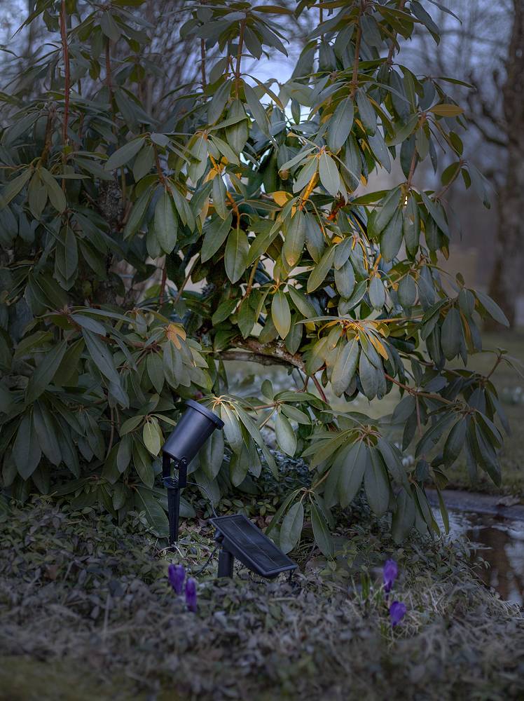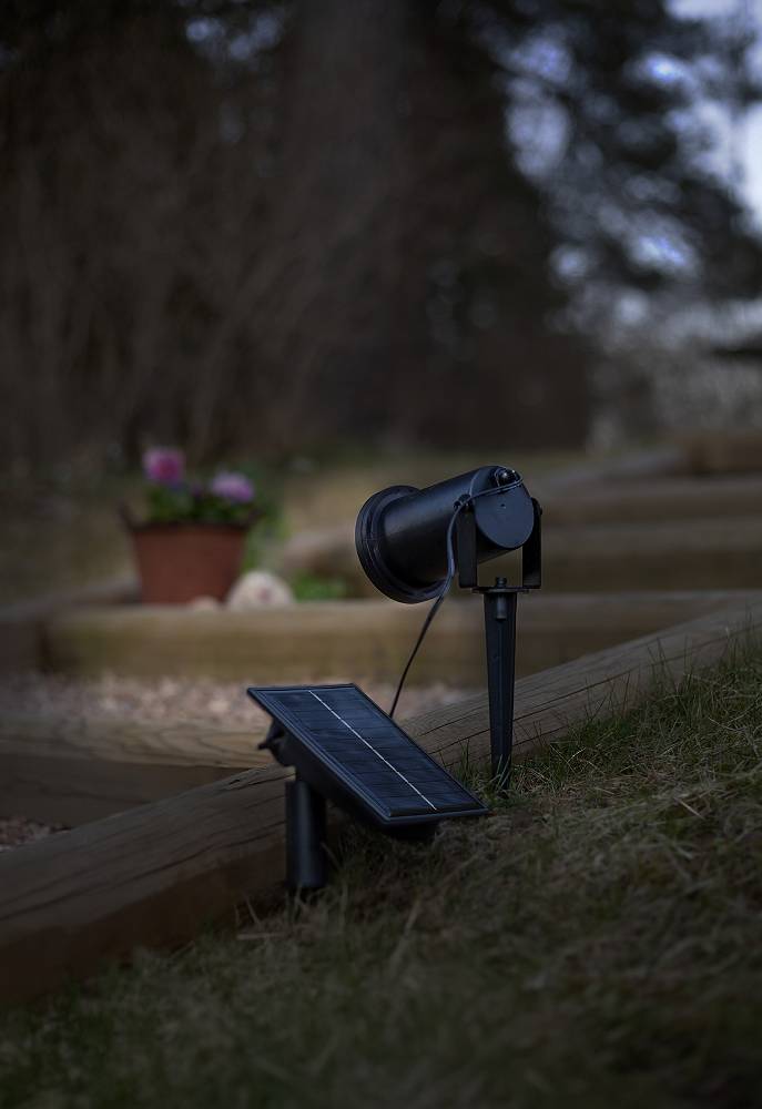 Solcellsspotlight som lyser upp i din trädgård eller på terrassen.
