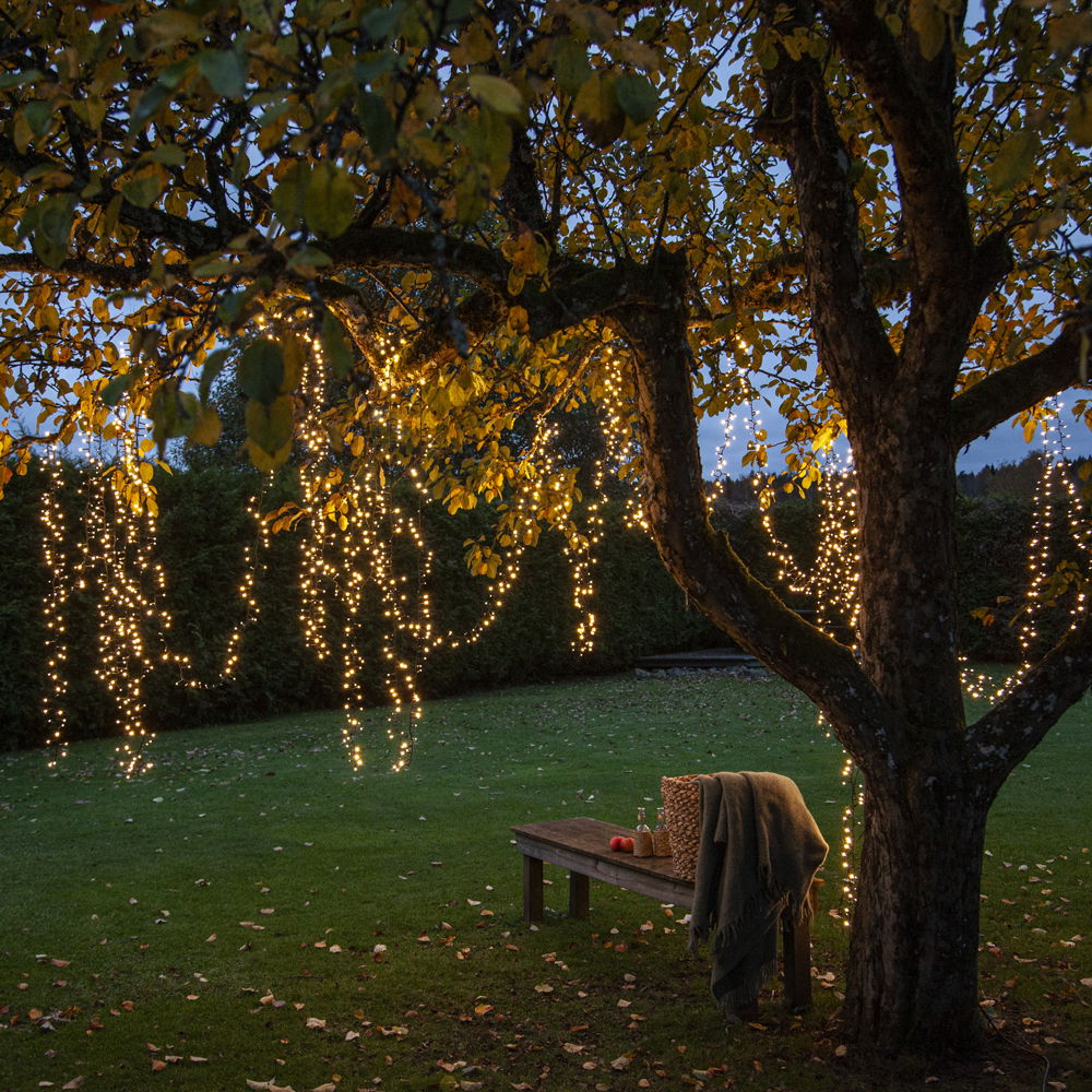 Ljusslinga med 1200 LED lampor med vackert varmvitt ljussken.