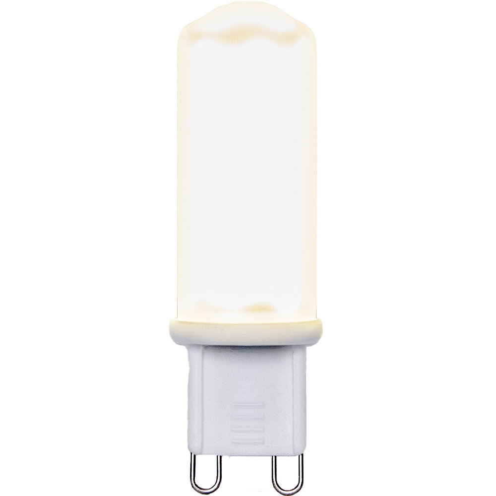 LED-lampa med G9-sockel. Lampan ger ett varmvitt ljus på 3000K. Med frostat glas och vitt filament får den ett snyggt och diskret uttryck i armaturen.